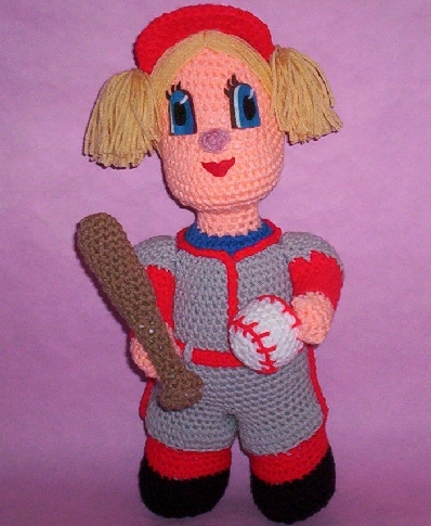 Very easy to make. Finished doll is about 15" tall. Crochet pattern includes: list of supplies needed; actual-size pattern pieces for making face and instructions for accessories.